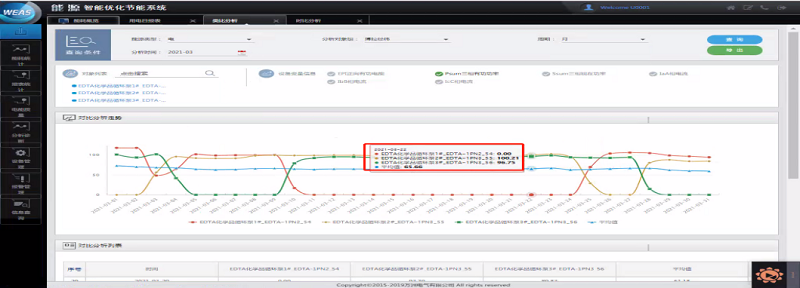 WEAS能源監測分析系統運行以來每年節約電費35萬元。具體節能效益如下: