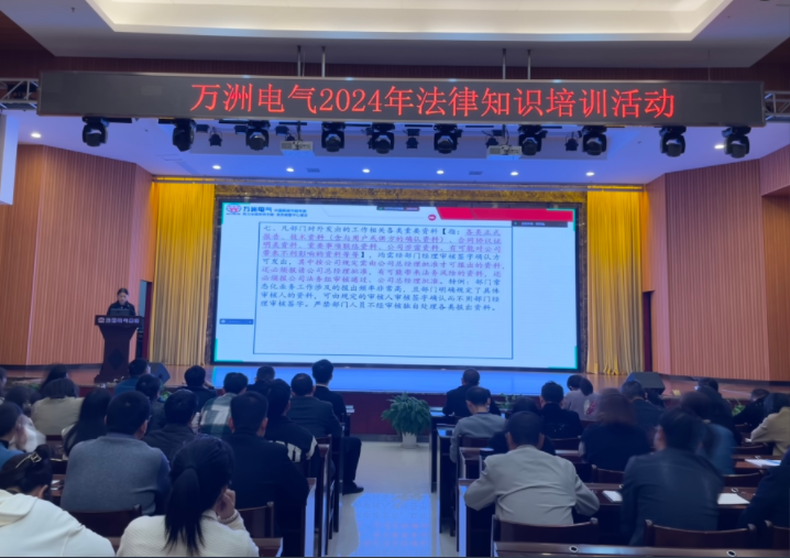 10月24日,萬洲電氣全體干部、市場大部、產(chǎn)品大部等相關(guān)部門人員70余人集聚一樓多功能廳,參加2024年法律知識相關(guān)培訓(xùn)。