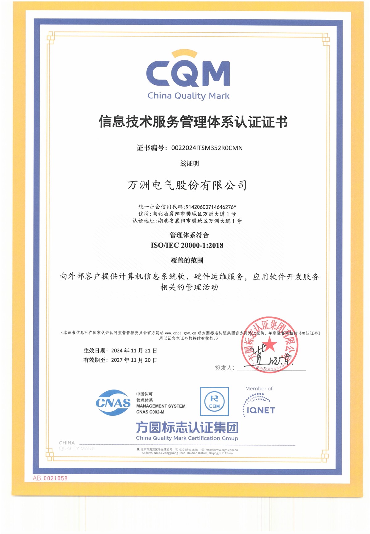 近日,萬洲電氣成功取得《信息技術(shù)服務(wù)管理體系》和《信息安全管理體系》兩項(xiàng)認(rèn)證證書。