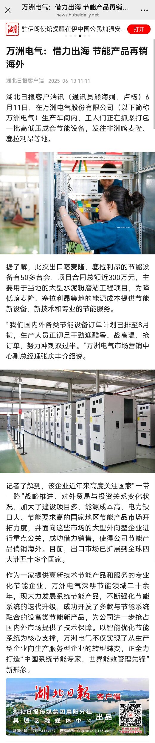 【湖北日報客戶端】萬洲電氣:借力出海 節能產品再銷海外
