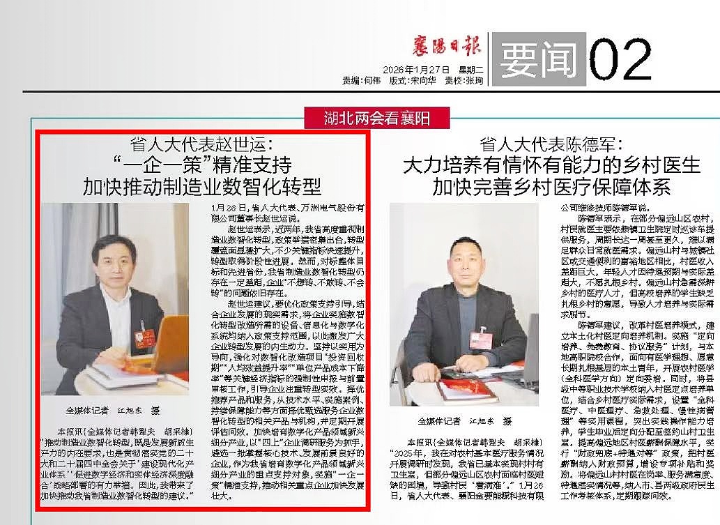 湖北兩會看襄陽:省人大代表趙世運:“一企一策”精準支持 加快推動制造業數智化轉型