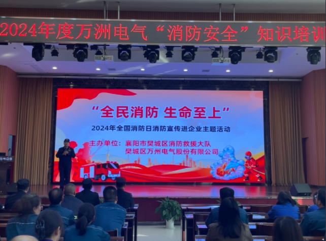 為增強(qiáng)員工消防意識(shí),提高員工突遇火災(zāi)等緊急情況的處置能力。11月8日下午,萬洲電氣專門邀請(qǐng)樊城區(qū)消防救援大隊(duì)到公司開展消防知識(shí)培訓(xùn)和救援演練活動(dòng),萬洲電氣、云川光電、萬洲機(jī)械、襄陽工廠各部門安全員、班組長、骨干等近五十人參加培訓(xùn)。