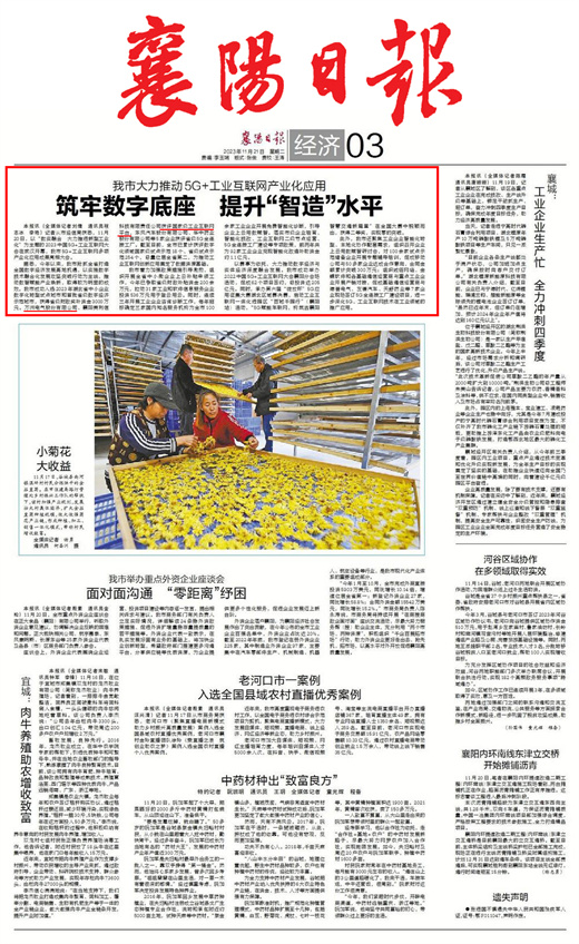 【襄陽日報(bào)】我市大力推動(dòng)5G+工業(yè)互聯(lián)網(wǎng)產(chǎn)業(yè)化應(yīng)用