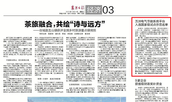 【襄陽日報】萬洲電氣節能系統平臺入選國家級試點示范...