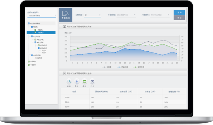 分析同類型設(shè)備間的差異變化和能耗變化,尋找最佳操作方式。