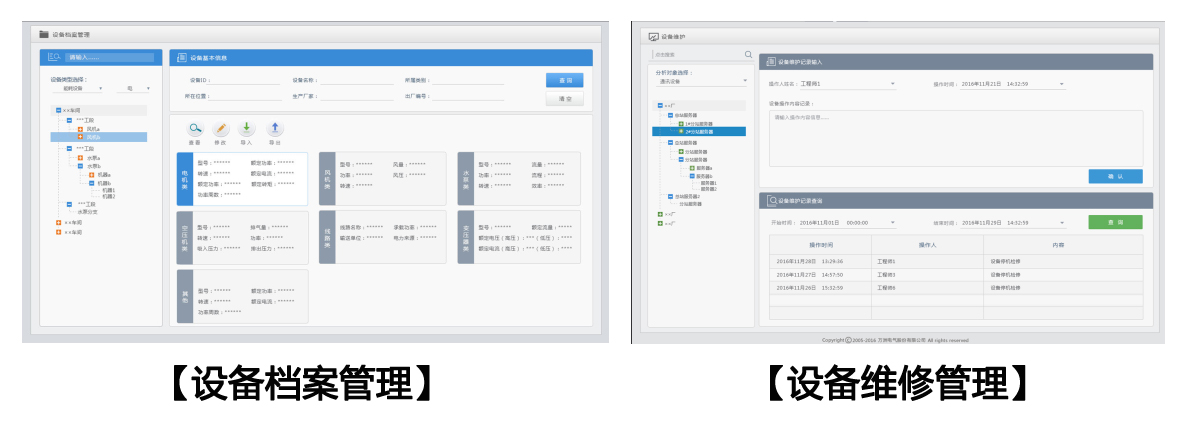 依據(jù)各類設(shè)備特定的屬性和日常問(wèn)題故障,為用戶提供精細(xì)化管理的手段和方法,包含:設(shè)備檔案管理和設(shè)備維護(hù)記錄管理兩個(gè)子功能。