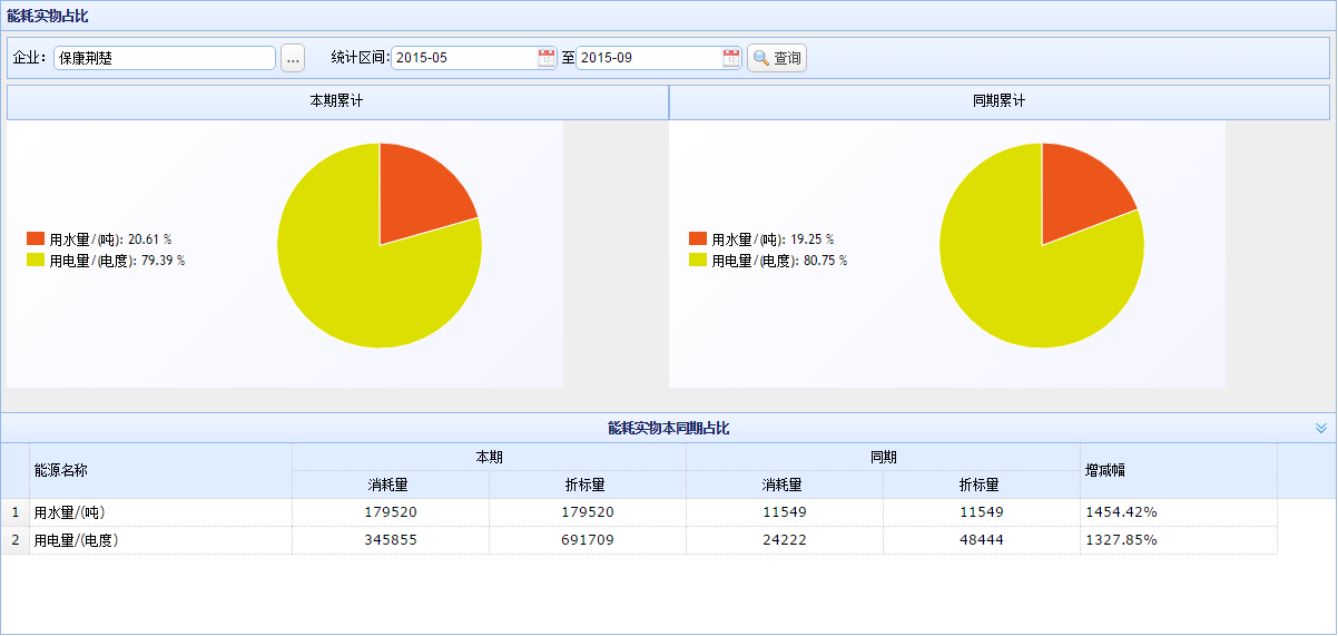 向用戶展示本企業的能耗、產量、設備等各種情況包括單位產品綜合能耗、產值綜合能耗、能耗占比、能耗成本、電量與電費分析等數據匯總。