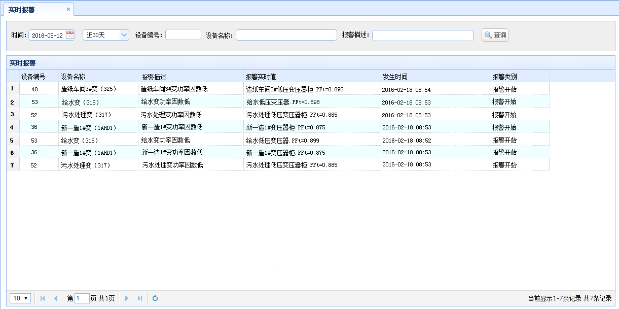 企業用戶、節能服務公司查看報警信息模塊,主要包括設備實時、歷史報警和能耗告警。