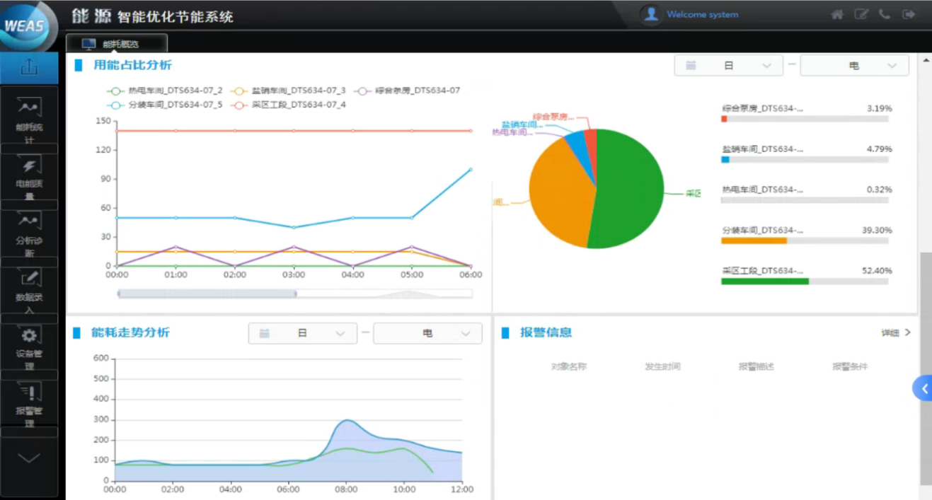 WEAS能源監測分析系統運行以來每年節約電費12.5萬元。具體節能效益如下: